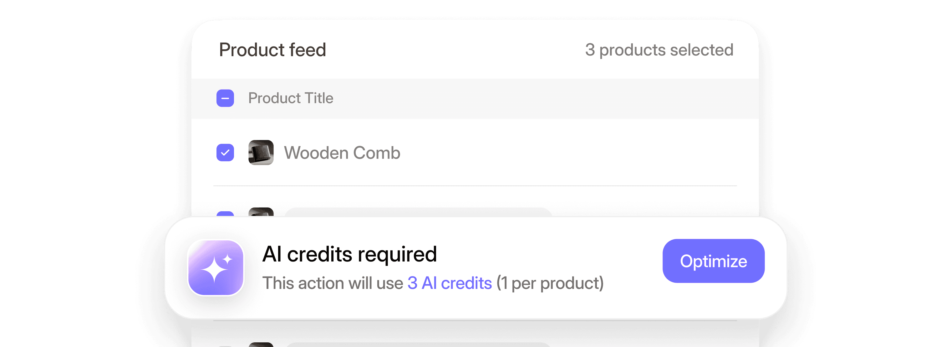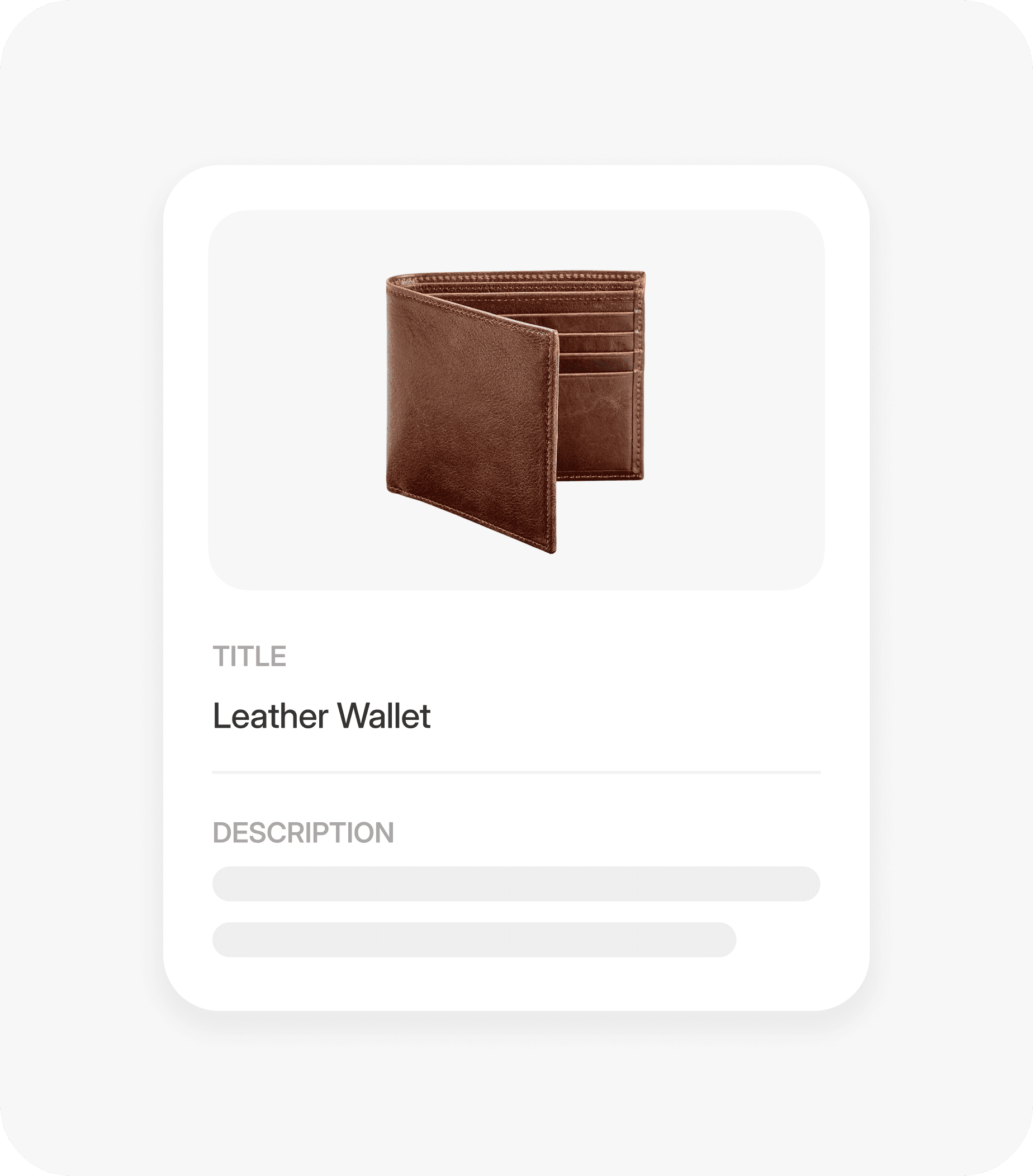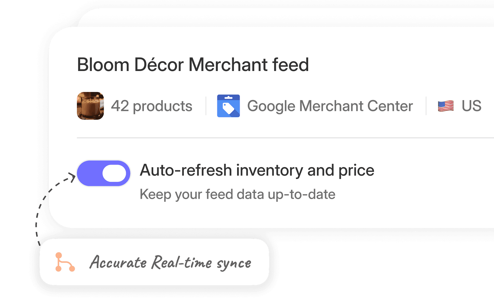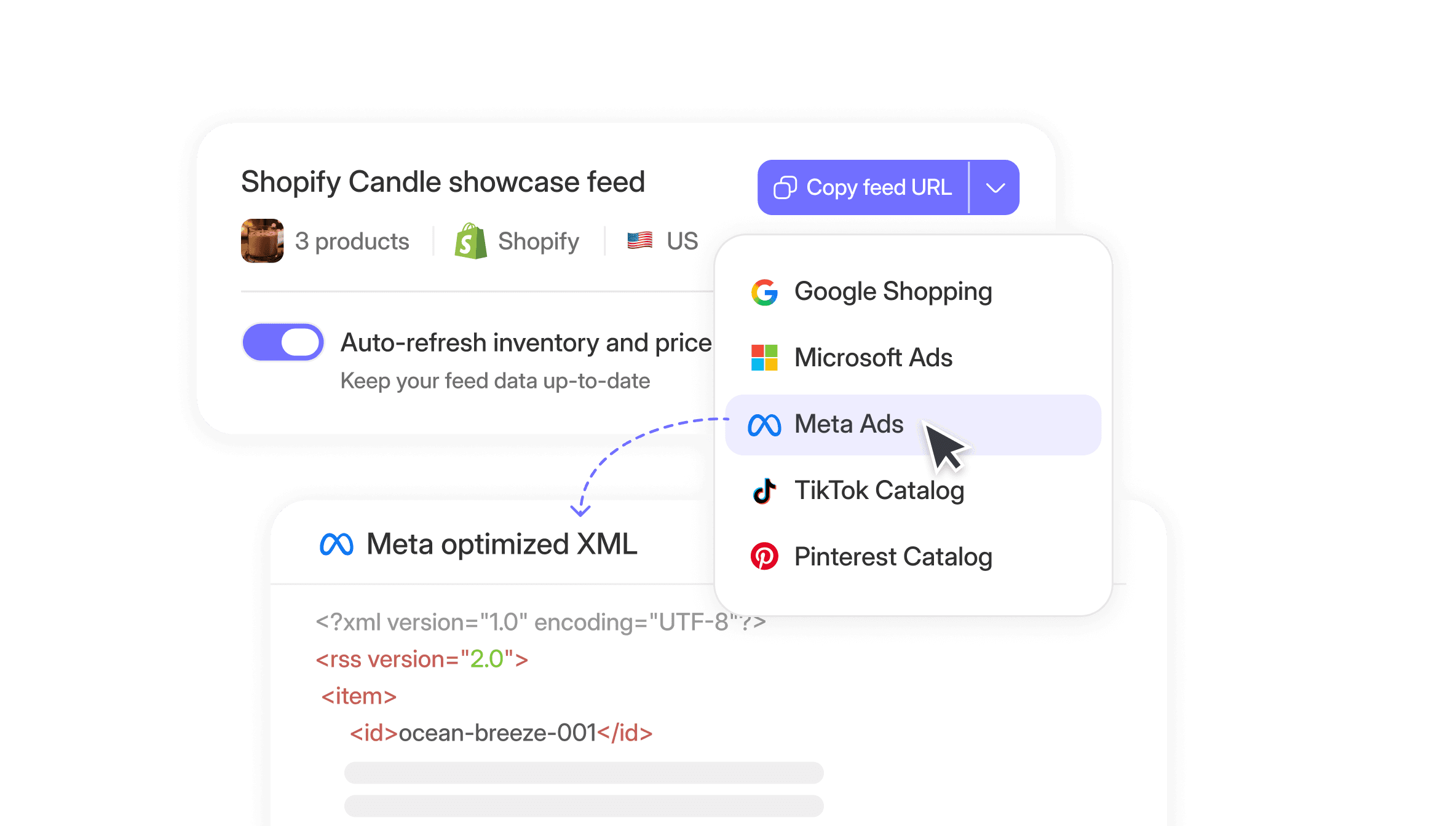 Generate a complete, ready-to-use Shopping feed in minutes — including titles, descriptions, and images.