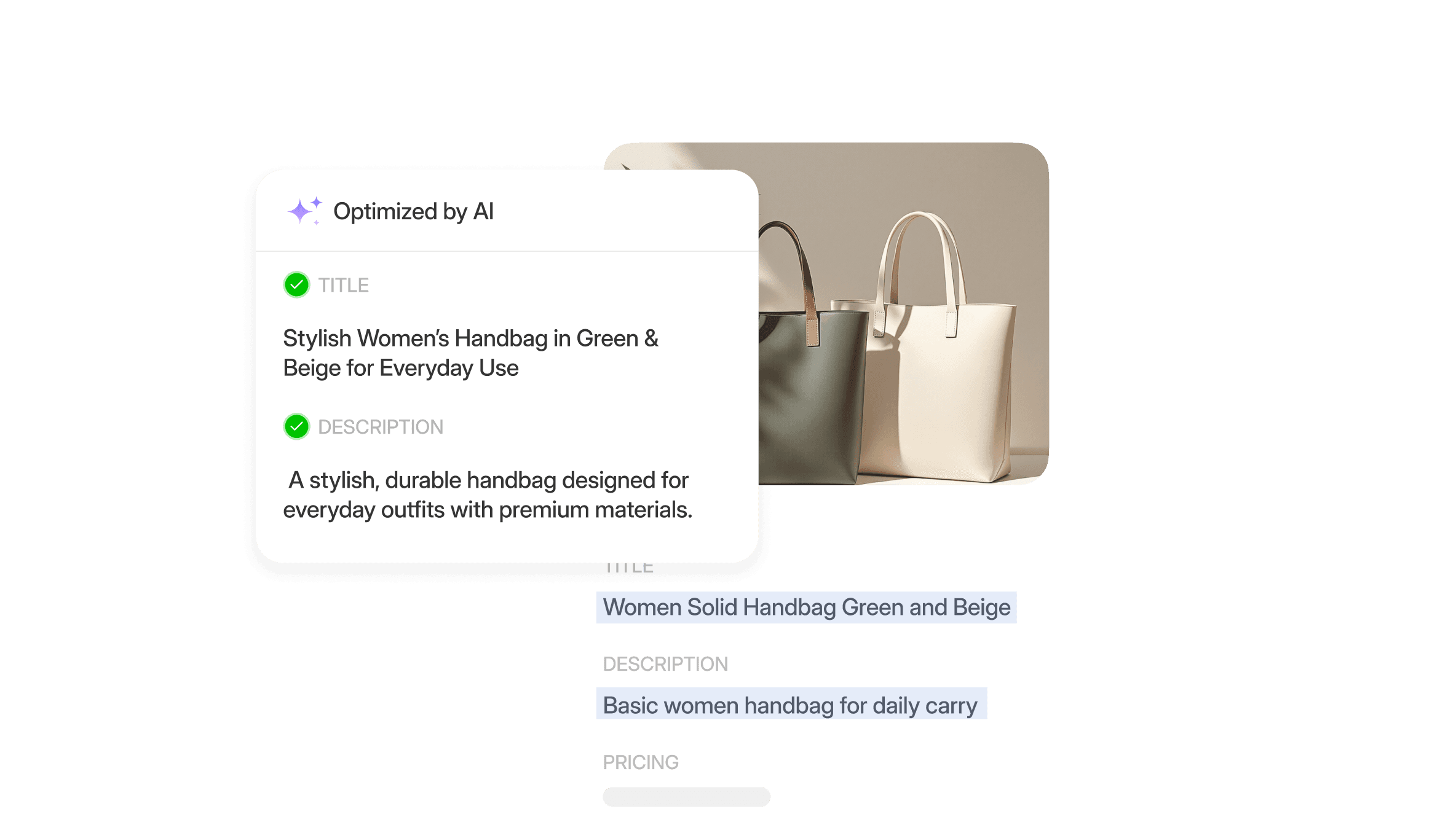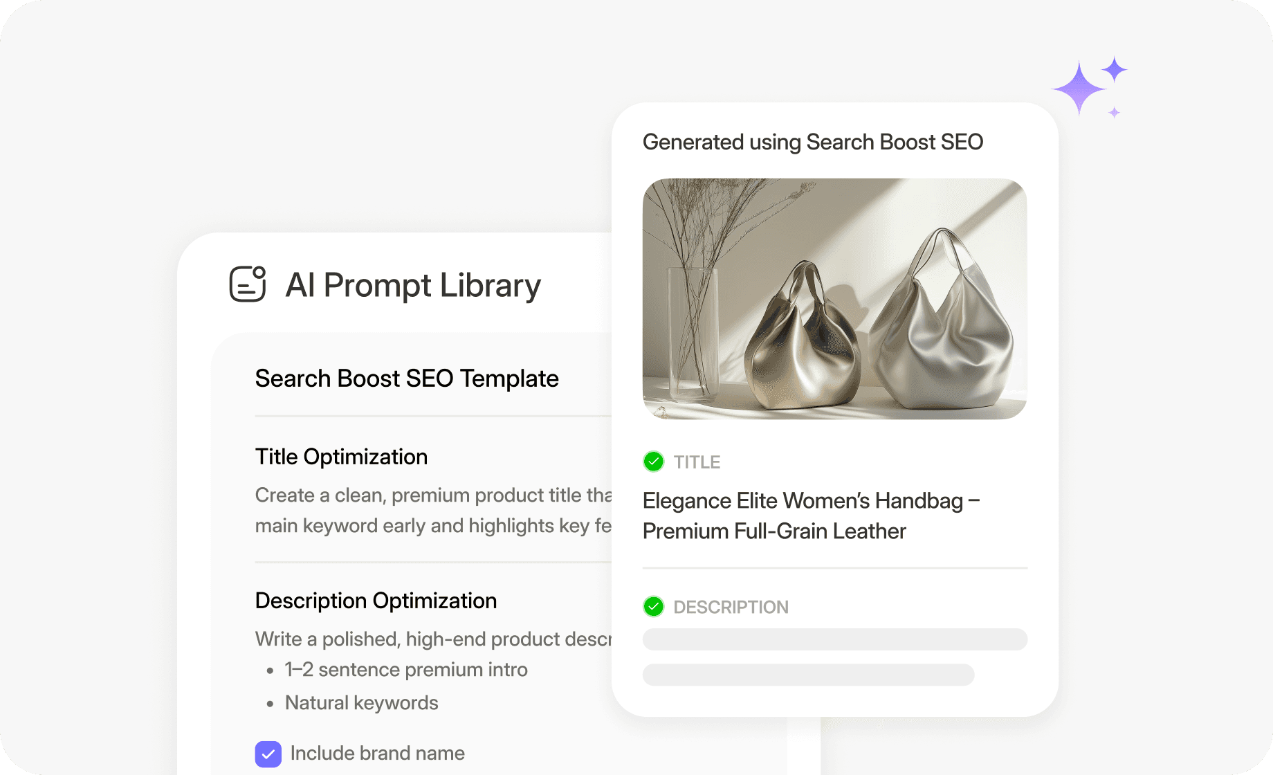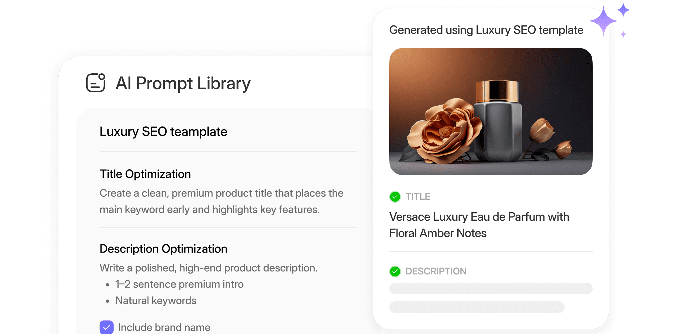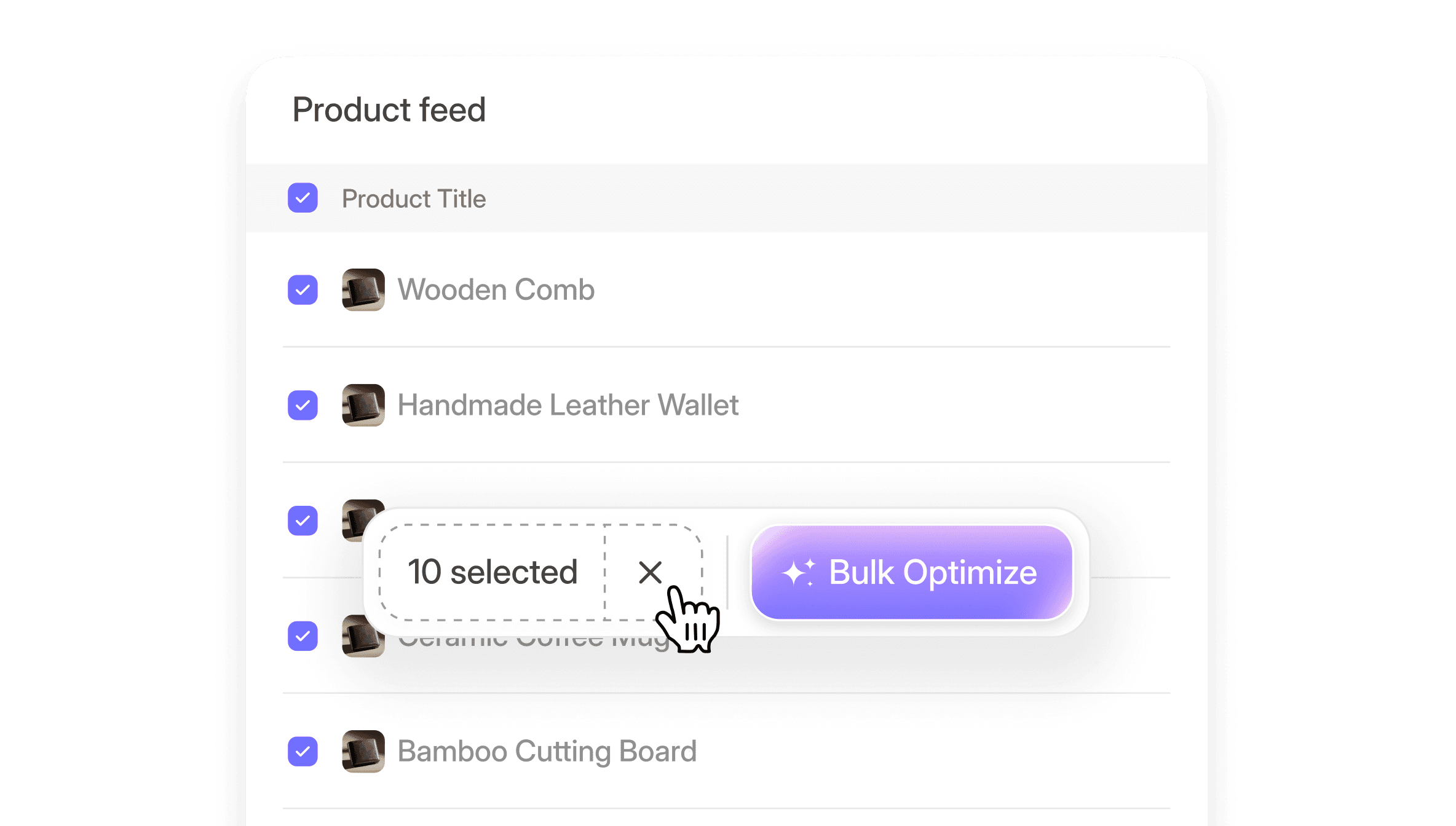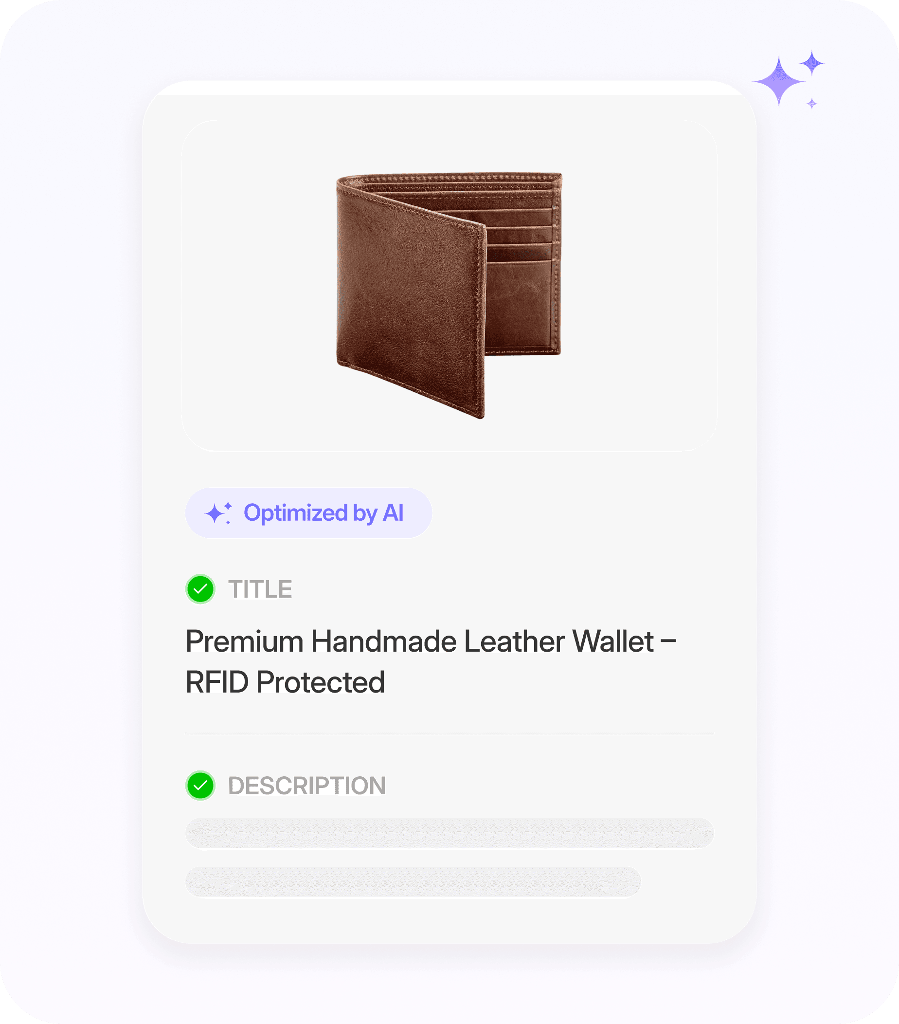 Optimize thousands of products in seconds. Save hours of manual edits and ensure your entire catalog stays consistent and high quality.